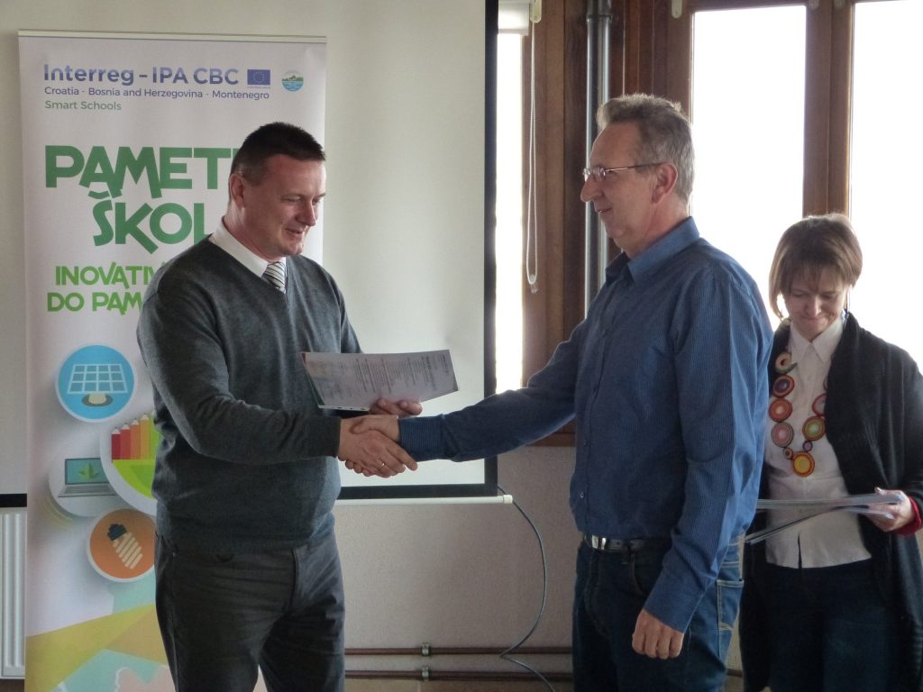 „Inovativnim umom do ICT pametnih škola“ ili skraćeno „Pametne škole 2“ naziv je 1,8 milijuna eura vrijednog prekograničnog projekta. Taj je projekt inače bio treće plasiran u kategoriji Doprinos prekograničnoj suradnji u našem prošlogodišnjem izboru za najbolji EU projekt. Projekt je sufinanciran sredstvima EFRR i IPA II fondova Europske unije u okviru INTERREG IPA CBC programa prekogranične suradnje Hrvatska – Bosna i Hercegovina – Crna Gora 2014.-2020. Projekt implementiraju Centar za  razvoj i podršku CRP Tuzla kao vodeći partner sa partnerima: Tuzlanski kanton i Brodsko –posavska županija. Ciljevi projekta su povećati infrastrukturne, institucionalne i upravljačke kapacitete projektnog područja za proizvodnju obnovljive energije u javnom sektoru i za poboljšanje energetske učinkovitosti javnih zgrada, osposobiti učenike i zaposlenike osnovnih i srednjih škola za pristupačne mjere uštede energije i proizvodnje energije iz obnovljivih izvora te povećati svijest javnosti o krajnjoj potrebi za pametnom i klimatski neutralnom energijom te o win-win mogućnostima za mudro korištenje energije smještenim u stambenim i javnim zgradama projektnog područja. Projekt je živopisna kombinacija zelenih ulaganja, umjetnosti i kulture kao inovativnog obrazovnog alata, pametne IC tehnologije, širokog školskog natjecanja za uštedu energije – sve primijenjeno kako bi se učenicima i zaposlenicima škola iz područja projekta te regionalnim i lokalnim službenicima omogućilo da praktično primijene ključne principe uštede i održivog upravljanja energijom. Paralelno s tim, dinamična javna komunikacija širi se i povećava svijest građana i ostalih javnih sastavnica o nizu dobitnih društveno-ekonomskih prednosti energetske učinkovitosti i proizvodnje obnovljivih izvora energije.