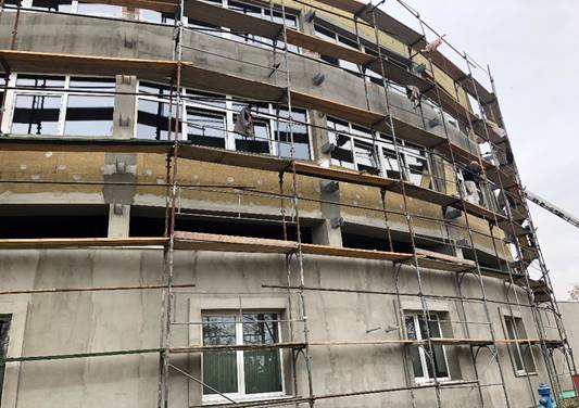 Energetska obnova zgrade Graditeljsko-geodetske škole Osijek bio je složen građevinski poduhvat. Specifični izgled zgrade, s prostranim prizemnim dijelom i velikim brojem prostorija uz vanjsku ovojnicu zgrade značio je veliku uštedu nakon obavljenih radova. Poseban izazov predstavljali su brisoleji – betonska konstrukcija za zaštitu od sunca. Isti su također, zbog dotrajalosti, morali biti obnovljeni a radi se o velikim betonskim konstrukcijama instaliranima visoko na pročelju zgrade.
