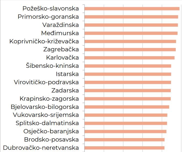 županiji, podijeljen s ukupnim brojem jedinica u toj županiji, uključujući i