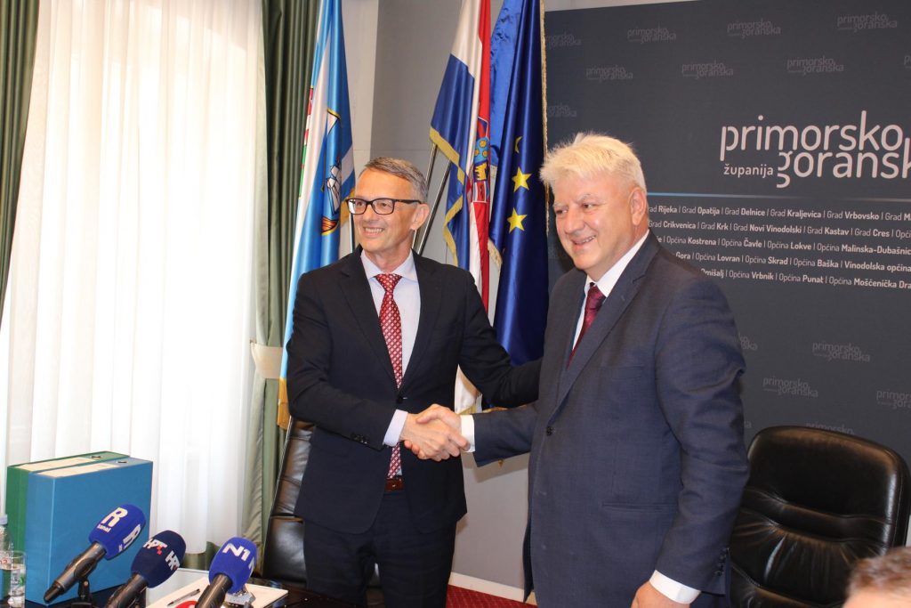 U petak je dosadašnji župan Primorsko-goranske županije Zlatko Komadina sa zamjenicima župana Marinom Medarić, Vojkom Brautom i Petrom Mamulom, izvršio primopredaju dužnosti novoizabranom županu Ivici Lukanoviću sa zamjenicima Tonijem Štimcem i Robertom Matićem.