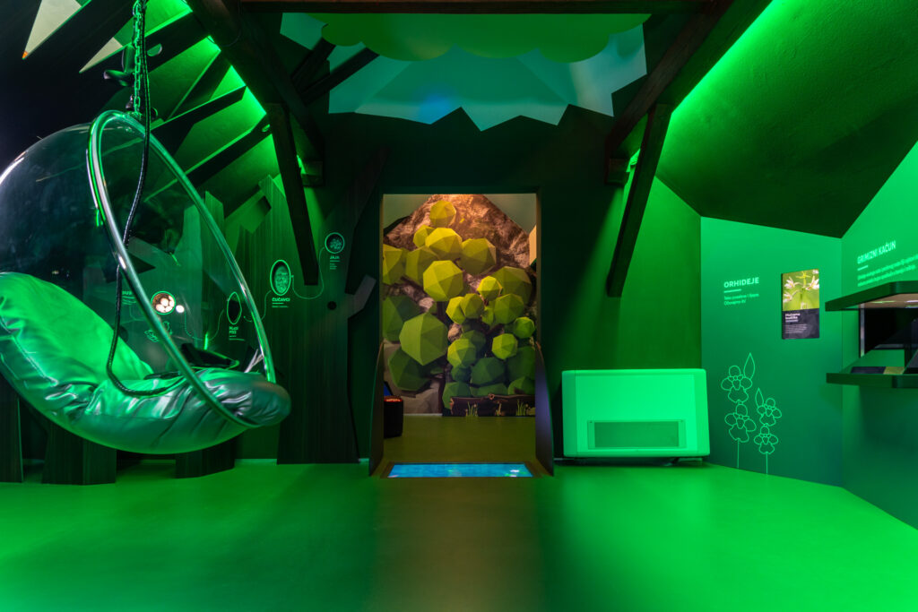Centar za prirodu „Zagorje“ uključuje multimedijalno uređenje prizemlja i kata centra uz omogućen pristupa osobama s invaliditetom putem dizala. Multimedijalna rješenja uključuju prikaz zaštićenih područja kroz virtualnu stvarnost i video produkciju 360°, prikaz zaštićene flore i faune kroz hologramske jedinice, pad hrašćanskog meteorita kroz projekciju sa zvučnim efektima, simulaciju Židovske jame, prikaz svih prirodnih značajki kroz interaktivni sustav aplikacija (fotografije, videoteke, zemljovidi, publikacije, kvizovi). Uređene su i tri zelene učionice – edukacijski poligoni za održavanje škole u prirodi opremljeni tablama i različitim didaktičkim pomagalima (drveni dalekozor, hranidbeni lanci, sviralica, taktilna staza, šumsko uho i dr.) koja učenicima približava učenje o prirodi i njezinim posebnostima. Također su izrađeni i radni listići za uzrast osnovne škole dostupni na web stranici javne ustanove uz pomoć kojih se može odraditi sat škole u prirodi.
