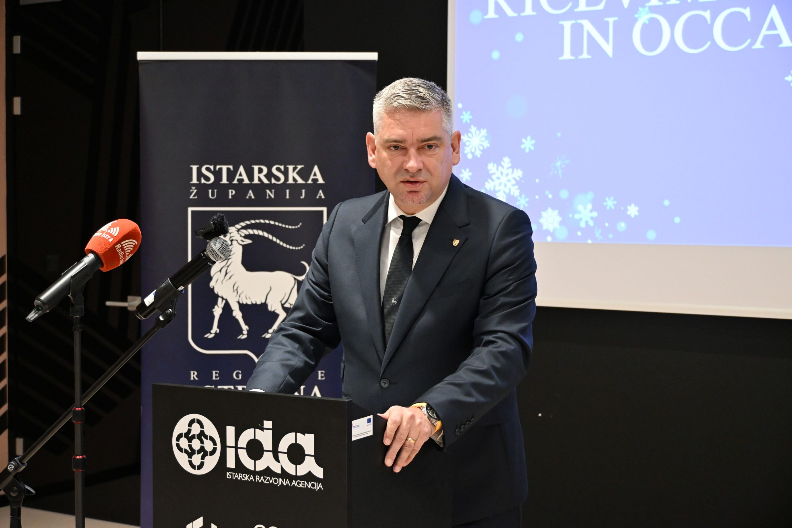Govoreći o razvojnim pokazateljima, istaknuo je kako Istarska županija prednjači u Hrvatskoj po broju gospodarstvenika u odnosu na broj stanovnika, ima najbolji omjer radnika i umirovljenika, bilježi najveći pad nezaposlenosti te snažne pozitivne demografske trendove, s jednim od najvećih priljeva doseljenika u državi. Ujedno je podsjetio i na snažne turističke rezultate te činjenicu da je Istra po deveti put proglašena najboljom svjetskom regijom za ekstra djevičanska maslinova ulja. „Sve to potvrđuje da gradimo regiju okrenutu budućnosti, ali duboko ukorijenjenu u svoje vrijednosti, tradiciju i zavičaj – regiju široka srca u kojoj nema mjesta netrpeljivosti i mržnji“, zaključio je župan.