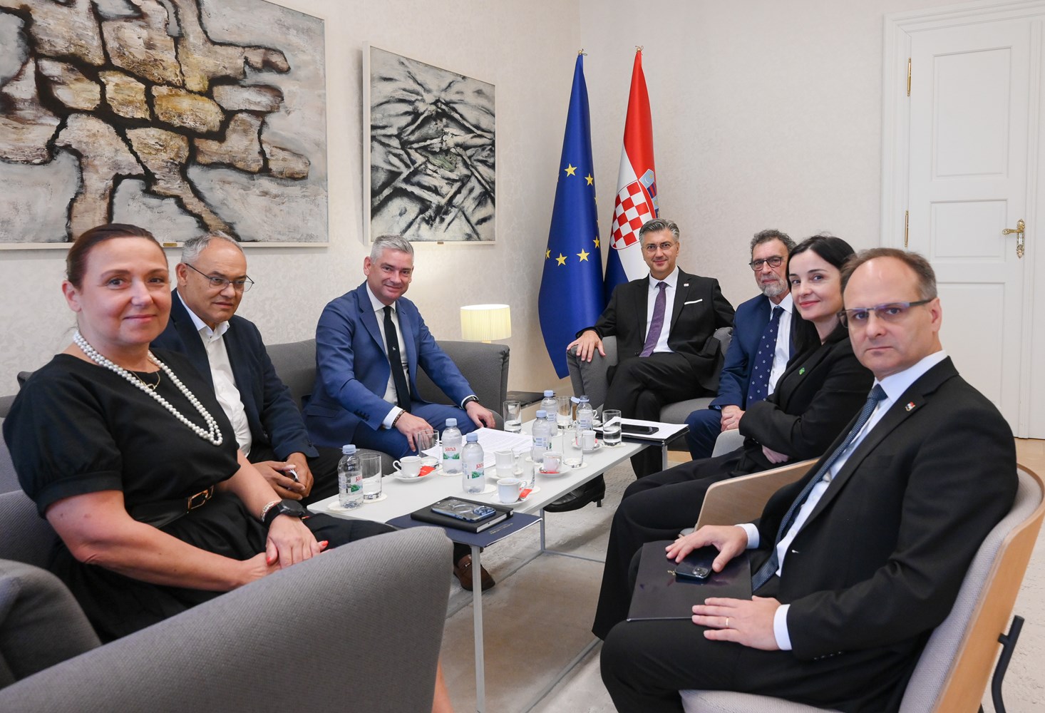 Istarski župan Boris Miletić i gradonačelnik Buzeta Damir Kajin jučer su se u Banskim dvorima sastali s predsjednikom Vlade RH Andrejom Plenkovićem i ministrima znanosti, obrazovanja i mladih Radovanom Fuchsom, zdravstva i socijalne skrbi Irenom Hrstić, zaštite okoliša i zelene tranzicije Marijom Vučković te predstojnikom Ureda predsjednika Vlade Zvonimirom Frka-Petešićem.