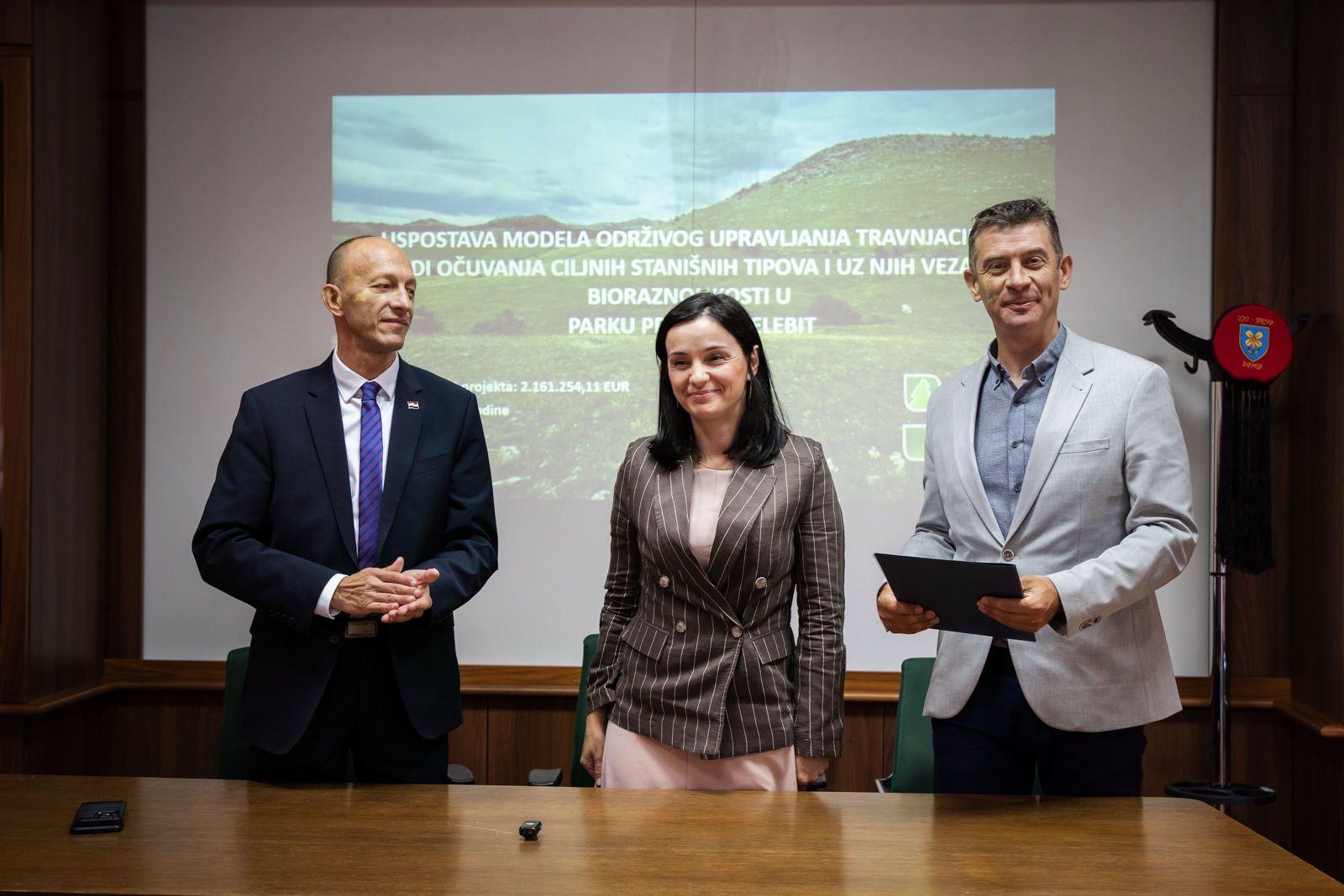 Javna ustanova Park prirode Velebit dobila je danas značajnu podršku za očuvanje svoje prirodne baštine. Ministrica zaštite okoliša i zelene tranzicije, Marija Vučković, uručila je ravnatelju Mariju Šabanu odluku o financiranju projekta pod nazivom „Uspostava modela održivog gospodarstva“. Održavanje travnjaka doprinosi očuvanju specifičnih stanišnih tipova i bioraznolikosti povezanih s njima u Parku prirode Velebit.