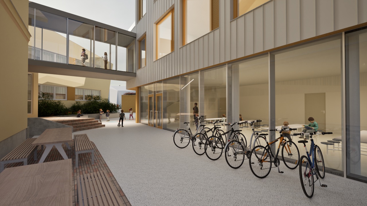 Novi školski prostori s postojećom će školom biti povezani zračnim spojnim hodnikom. Na krovu građevine predviđena je izgradnja integrirane sunčane elektrane za vlastitu potrošnju. Time se potiče korištenje obnovljivih izvora energije, osigurava energetska učinkovitost, smanjuju troškovi i negativan utjecaj na okoliš.