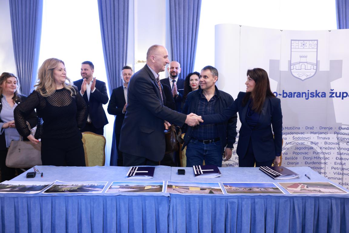 Županica Nataša Tramišak potpisala je danas (19. ožujka 2026. godine) ugovore s izabranim izvođačima radova za projekte rekonstrukcije i dogradnje OŠ Ivana Gorana Kovačića Đakovo, OŠ Jagodnjak i Područnu školu Ivanovci, dio OŠ Ladimirevci. Riječ je o nastavku snažnog investicijskog ciklusa u obrazovnu infrastrukturu na području Osječko-baranjske županije, vrijednog više od 74 milijuna eura, s ciljem stvaranja uvjeta za jednosmjensku nastavu i podizanje standarda školovanja. Ovim projektima dodatno se potvrđuje opredijeljenost županije za ravnomjeran razvoj svih svojih krajeva te osiguravanje kvalitetnih uvjeta za učenike i nastavnike.