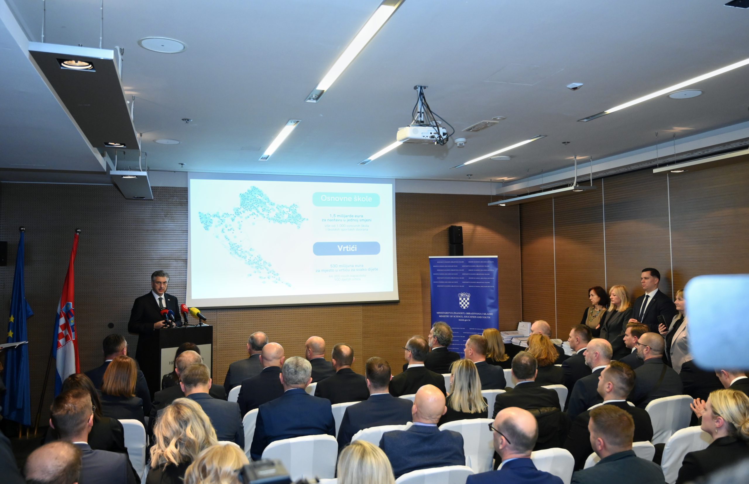Zahvalivši svima koji su sudjelovali u pripremi projekata, premijer Plenković istaknuo je da je u tijeku dosad neviđeni investicijski ciklus u obrazovnu infrastrukturu vrijedan 2,7 milijardi eura, u vrtiće, osnovne i srednje škole, fakultete i znanstvene institute i sportske dvorane.