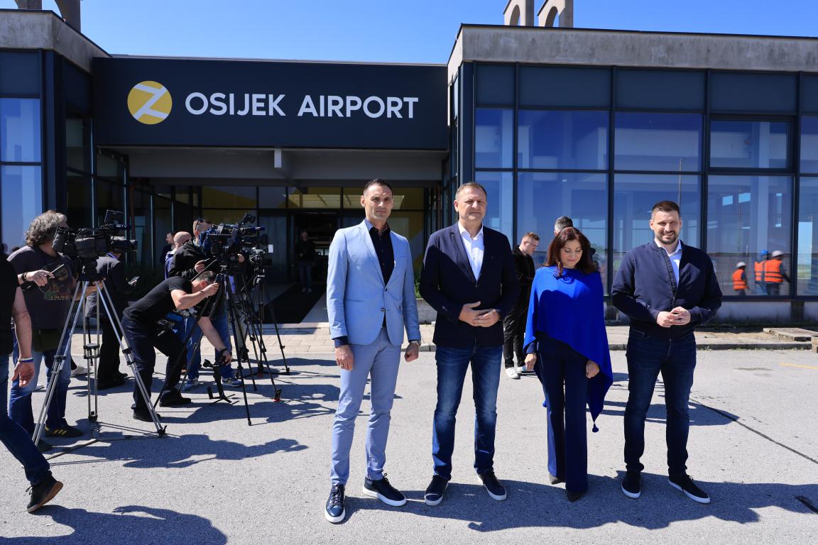 Na prostoru Zračne luke Osijek započeli su radovi na rekonstrukciji putničkog terminala ukupne vrijednosti 14, 3 milijuna eura, a njome je obuhvaćeno proširenje i reorganizacija postojeće pristanišne zgrade kako bi se zadovoljili suvremeni sigurnosno-prometni standardi. Predviđeni završetak radova je ožujak 2026. godine. Početku radova su uz direktora Zračne luke Osijek Tihomira Pejina, nazočili obnašatelj dužnosti župana Mato Lukić, gradonačelnik Grada Osijeka Ivan Radić, saborska zastupnica Nataša Tramišak, zamjenik župana Josip Miletić, saborski zastupnik Goran Ivanović i ostali gosti.