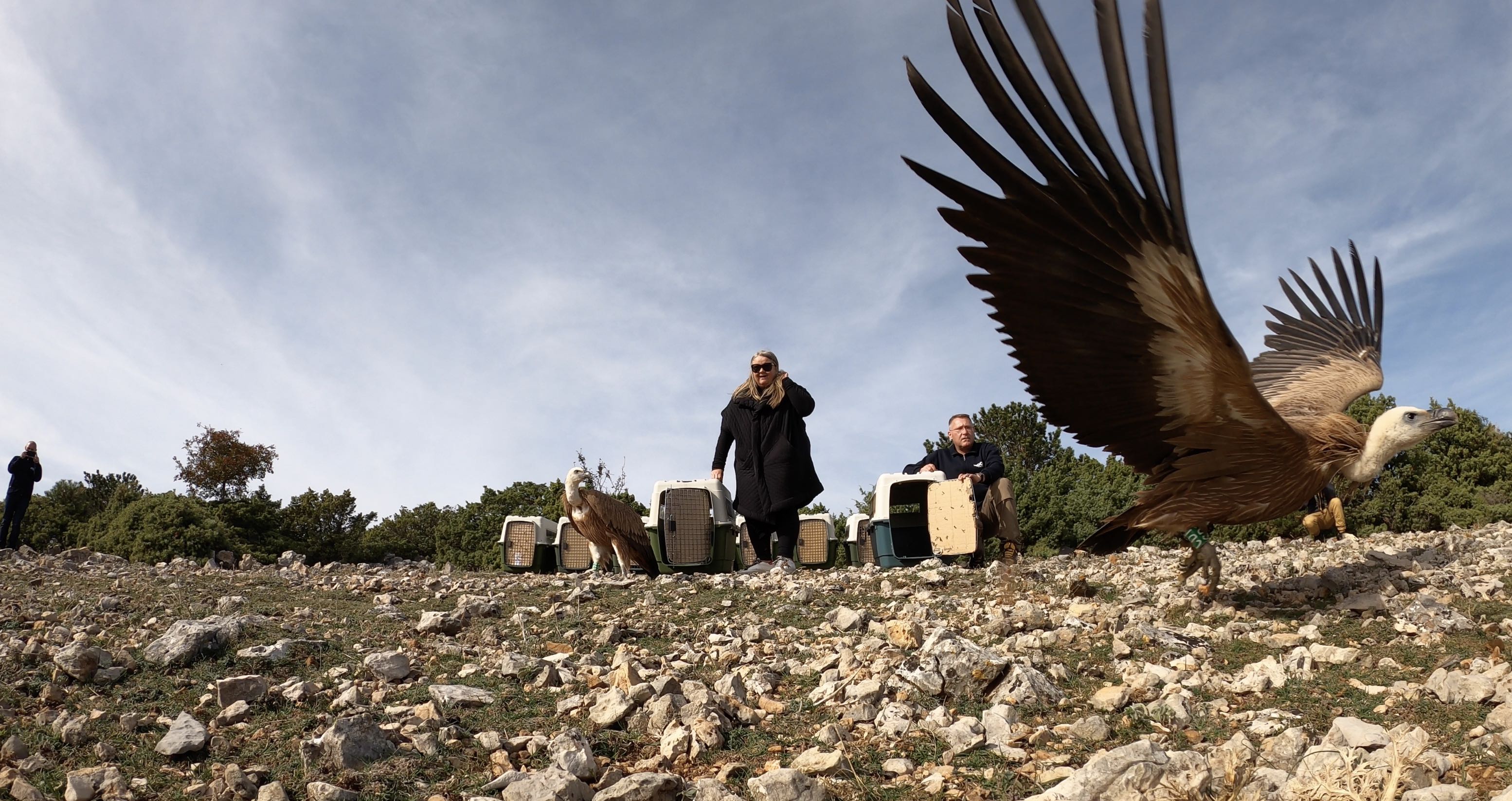 Iz Oporavilišta za bjeloglave supove Beli na otoku Cresu u prirodu su puštene oporavljene jedinke bjeloglavih supova.